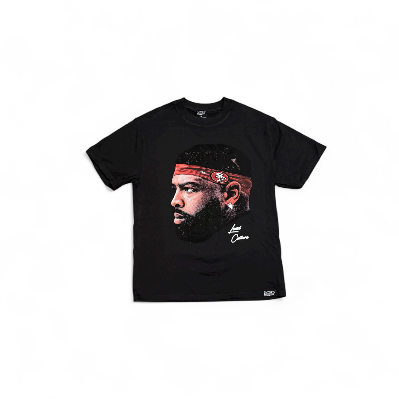 • Screen-printed one-of-a-kind Fred Warner player portrait design